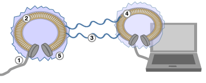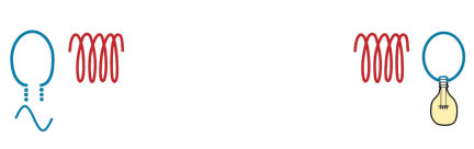 The project died when Tesla's financial backers pulled the plug, possibly because Tesla seemed unclear as to how to bill customers receiving wireless power. Ironically, Tesla also invented the alternating current (AC) system of power production, transmission, and distribution that would become the standard for the modern grid. But electromagnetic radiation can indeed carry energy through air or empty space and over large distances. One familiar example is the energy we receive from the sun, mostly as visible light. Another is radio waves, first detected by Heinrich Hertz in 1888. An electromagnetic wave is a synchronized dance of an electric field and a magnetic field. Because an oscillating magnetic field generates an oscillating electric field, and vice versa, the two fields sustain each other as the wave propagates. Radio waves and light waves, however, tend to shoot out in all directions. This makes for very inefficient power transmission, because the farther the waves travel, the larger the volume of space throughout which their energy spreads. Technologies such as lasers and parabolic antennas can confine the energy of electromagnetic waves in tight beams, that can transfer power. But beams have disadvantages. One problem is that anything that happens to cross a beam's path may get fried. Soljacic's wireless power system harnesses oscillating electric and magnetic fields in a novel way. Although it doesn't radiate energy as a radio antenna does, it transmits power across greater distances than a conventional transformer can. A typical antenna—the simplest type being essentially a rod—has a size comparable to the wavelength of the radiation it emits. The electric and magnetic fields it creates are in phase. They rise and fall in sync with each other, a property that's crucial to the self-sustaining feedback that allows a wave to propagate. The circuit in Soljacic's device carries an alternating current with a frequency of about 10 megahertz (MHz). It generates a magnetic field that induces a current in the adjacent coil, which then amplifies the magnetic field. Electromagnetic waves of 10 MHz have a wavelength of about 30 m. Because the coils are much smaller than that, they don't generate conventional waves, explains Aristeidis Karalis, an MIT graduate student who helped with Soljacic's theoretical model and computer simulations. Instead, "the electric field is at its maximum when the magnetic field is zero, and vice versa," which is the opposite of being in phase, Karalis says. This arrangement means that the fields' energy stays mostly in the vicinity of the coil, and only a small percentage of the total power disperses as waves. The MIT team introduced two additional ingredients into its design, the first to make it safe and the second to make it efficient. For safety, they took the advice of John Pendry, an Imperial College London physicist who visited the MIT lab in 2005. Pendry recommended designing the system to minimize exposure to electric fields, since rapidly changing electric fields can heat up the surroundings, including any people close by. "With the electric field you'd get hot, like in a microwave oven," Pendry says, whereas the body "hardly responds to magnetic fields." In the team's designs, the magnetic fields change slowly enough to not create strong electric fields. The magnetic fields themselves are comparable in strength to Earth's magnetism, Karalis says, and only one-thousandth as strong as the field inside a magnetic resonance (MRI) machine. On the other hand, both MRIs and Earth have constant, not rapidly oscillating, fields. But the MIT scientists say that their fields stay within safety guidelines issued by the Institute of Electrical and Electronic Engineers. Resonating power