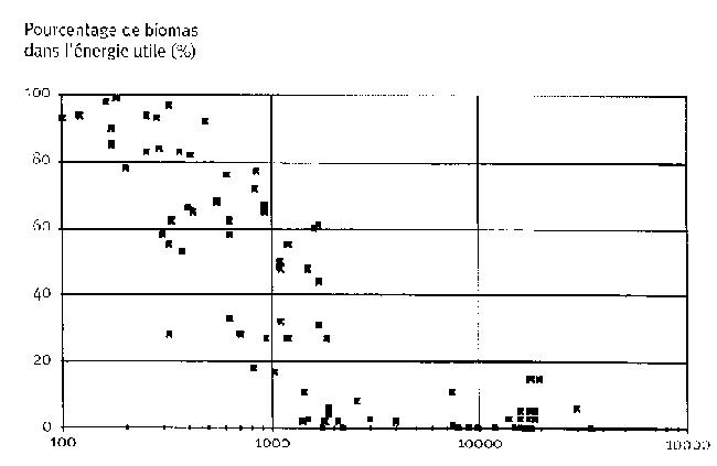 Figure 1 Utilisation de la biomasse et revenu national par habitant, d'après