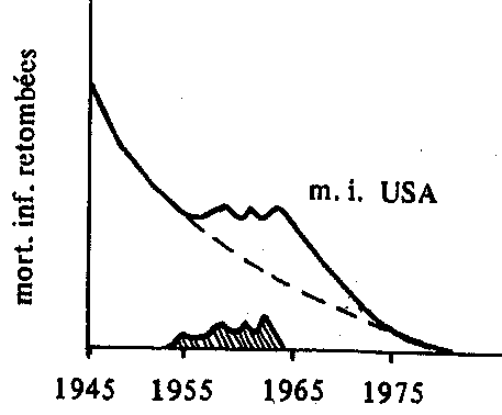3. Deux auteurs ont cherché récemment à établir la diminution de l'espérance de vie causée par 1 rem,en utilisant tous les deux l'accroissement du taux de leucémie: - Rosalie BERTELL (collaboratrice de I.D.J. Bross, voir 2. Journal of Surgical Oncology, v. 9, p. 379, 1977) trouve 1 an. - R.L. GOTCHY (appartenant au US Nuclear Regulatory Commission; Health Physics, v. 35, p. 563, 1978) trouve 1 jour. 4. E.J. STERNGLASS. (University of Pittsburgh Report, 1975) a montré une corrélation d'apparence spectaculaire entre les tests dans l'atmosphère (1953-1963 surtout) et la mortalité infantile dont la forte tendance décroissante a été interrompue par un plafonnement pendant cette période, que Sternglass attribue aux retombées de Sr 90 et de Cs 137. Mais la baisse de la mortalité infantile a été régulière et ininterrompue dans les autres pays développés de l'hémisphère Nord (UN Statistical Yearbook) qui ont tous connu des concentrations de Sr et Cs comparables dans le sol, le lait, les os... (UNSCEAR 1977 Report). ![]() 6. Dans leur travail fondamental sur les effets génétiques de l'irradiation naturelle au-dessus d'un gisement de thorium, N. KOCHUPILLAI et al. (Nature, v. 262, p. 60, 1976) la mesurent en R, ensuite en mr (interprétés comme des «mrem» par PORETTI, et comme des «mrad» par SUNDARAM, in Nature, 267, 728; 1977), créant ainsi une difficulté d'interprétation supplémentaire (ce type de rayonnement est composé pour un tiers de rayons a, dont l'efficacité biologique relative esst élevée). 7. Il semble, hélas que l'apparition d'attaques personnelles dans les mass media et jusque dans les publications scientifiques, permette encore maintenant de reconnaître les travaux importants dans le domaine des faibles doses (voir, à la suite des premières publications de MANCUSO, STEWART et KNEALE, bien des articles dans la grande presse, mais aussi B.L. COHEN, in Health Physics,35, 582,1978; et L.A. SAGAN, Electric Power Research Institute, Palo Alto, 1978). p.19