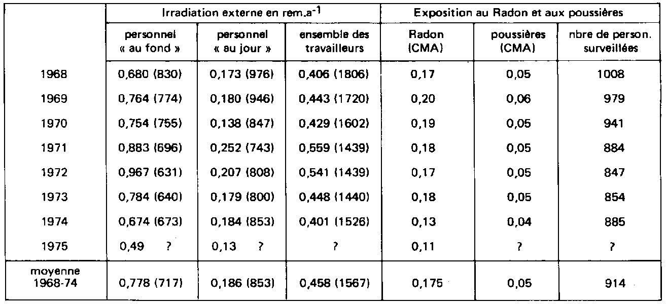 EXPOSITION AU RADON DES MINEURS D'URANIUM DISTRIBUTION DES CONCENTRATIONS MOYENNES ANNUELLES EN FRANCE ![]() Le rapport de l'UNSCEAR de 1972 (UNS 74) signalait