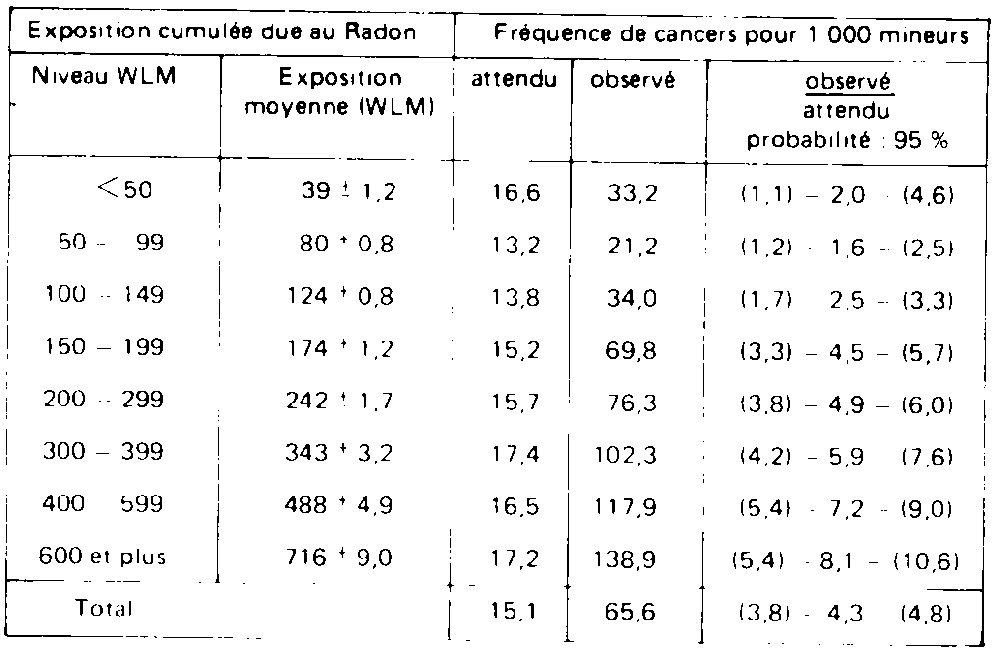27 WLM (Working Level Month). Ces valeurs, ajoutées à l'irradiation