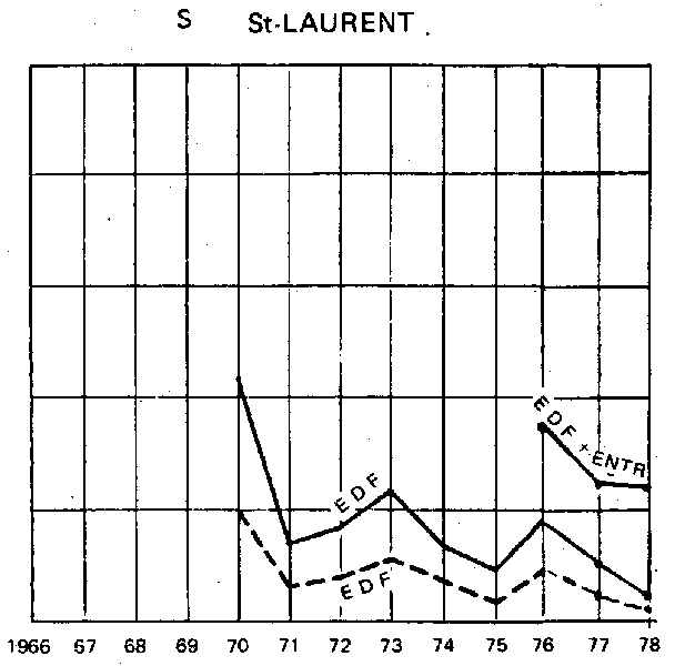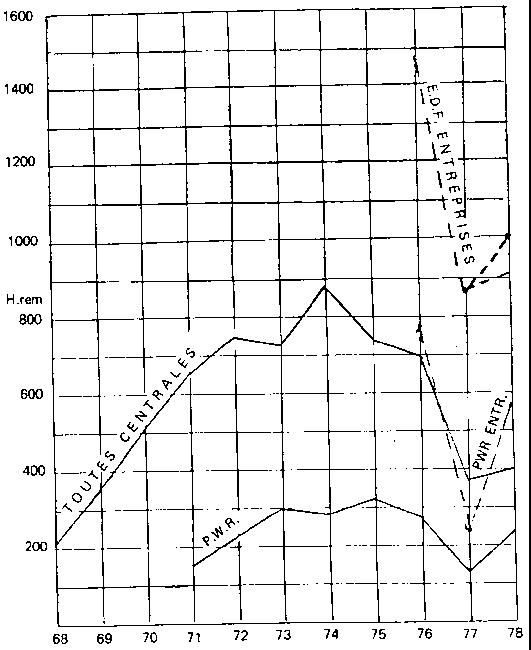 Il ne faut donc pas se fier à ces courbes qui se situent dans une phase transitoire pour prévoir l'avenir. Une analyse statistique des «résultats» obtenus dans les centrales PWR étrangères (en particulier américaines) devrait, a priori, donner de meilleurs résultats (tableau suivant): ![]() |