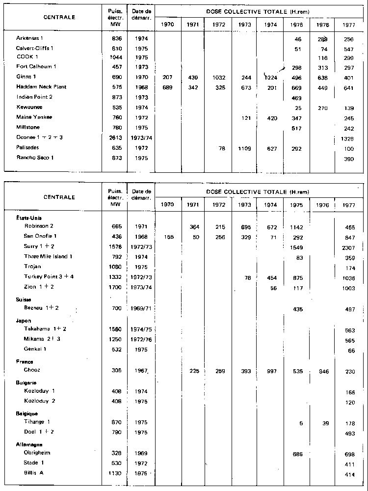 Il semble donc que les doses collectives annuelles totales en période normale (un arrêt de tranche) ou exceptionnelle (révision décennale) se situeront aux alentours des niveaux suivants: