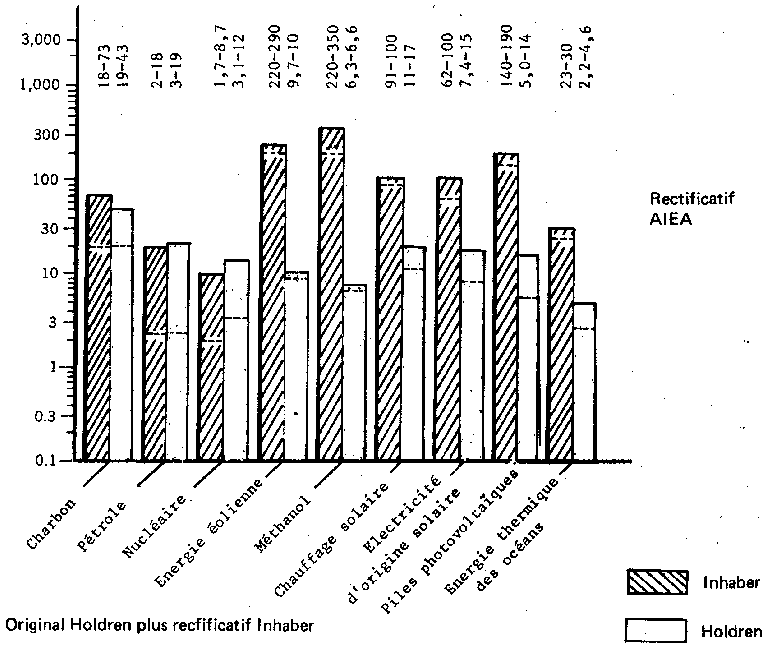 Querelle d'experts, pensez-vous. Mais non, car ce démenti provenait de scientifiques du Energy and Resources Group de l'Université de Californie à Berkeley, MM. Holdren, Smith et Morris qui s'indignaient de l'usage fait de leurs travaux. Car Inhaber après avoir prévenu que «pour éviter des biais dans l'estimation des risques de santé pour le public provenant du nucléaire, il avait utilisé pour une partie de ses données de base, des valeurs provenant des travaux d'un critique du nucléaire bien connu... » (Holdren en l'occurrence). Le rapport utilisé était «Evaluation of Conventional Power Systems» Report ERG 75-5 Berkeley July 1975. La lettre de protestation publiée dans le numéro 204 de Science montre toutes les manipulations et démontre les erreurs. Nous ne résistons pas au plaisir de vous en donner un passage où les auteurs se défendent. A report we coauthored (2) is indeed the source of a number of AECB 1119's citations, but Inhaber has both misrepresented and misused our results.Pour ceux d'entre nous qui sont fâchés avec l'étranger dans le texte, en voici la traduction: «Un rapport que nous avons cosigné est en effet la source d'un certain nombre de citations du rapport AECB 1119, mais Inhaber a, à la fois, dénaturé et falsifié nos résultats. (suite)