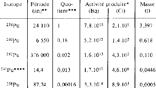 | - plutonium formé par tonne