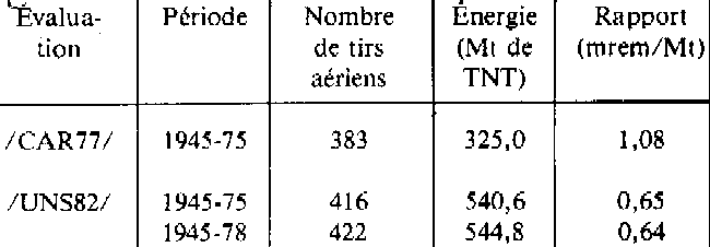 Cette dernière fraction a fait l'objet de nombreuses évaluations fondées principalement sur des mesures de contamination radioactive de l'environnement. Ces résultats et synthèses ont été publiés dans la littérature scientifique internationale. Il n'en va pas de même pour le plutonium résultant de la première fraction. Cette lacune s'explique principalement par le secret qui entoure des activités industrielles qui consistent principalement à extraire, purifier et ouvrager du plutonium destiné à un usage «militaire». Le développement industriel du retraitement des combustibles irradiés de la filière à eau ordinaire et des réacteurs à neutrons rapides (fabrication et retraitement du combustible) ne modifiera pas nécessairement cette tendance. 1. Le plutonium des explosions nucléaires aériennes Les évaluations, portant sur la quantité