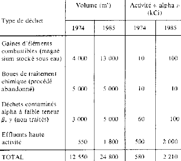 non conditionnés représentait donc en 1974 environ 580 kCi,