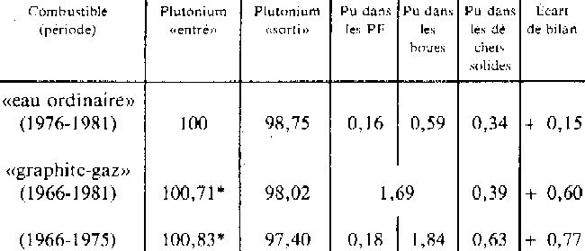 1982 fin 1982 TWh 641,2 715,1 842,2 920,6 3.119,1 6.117,6 En faisant l'hypothèse que cette énergie électrique a été produite par des réacteurs du type « eau ordinaire », on peut calculer le plutonium produit en fixant les paramètres suivants: - taux de combustion massique = 33.000 MWthj t-1 (soit 0,264 TWeh t-1). p.17