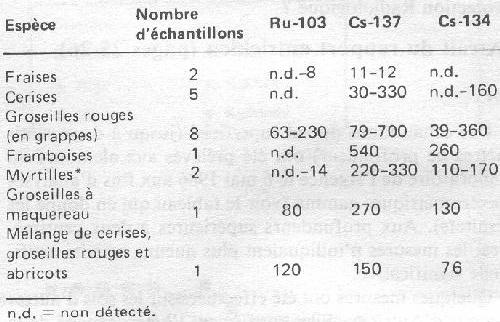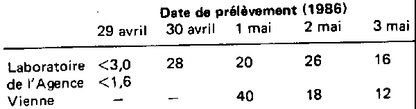 et analyse faites en juin 1986; Bq/kg)