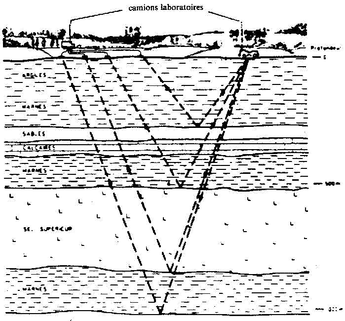 Dans ce cas, la présence de failles risque de créer des cavités sous le site éventuel de P. Il y aurait donc alors fissures et circulation d'eau jusqu'au barrémien sableux, d'où contamination plus élevée au forage de Sauvage-Magny. On constate donc que, dans tous les cas de figure, la Haute-Marne sera contaminée par d'éventuelles fuites radioactives. 05. Les études en cours Il est bien évident que le B.R.G.M.