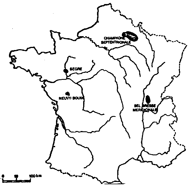 de quelques km2, à une profondeur de plusieurs centaines