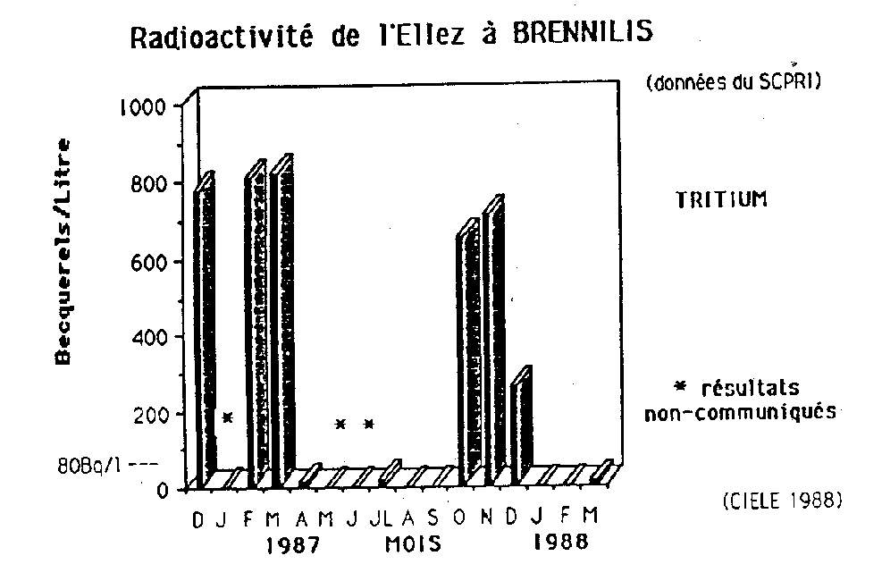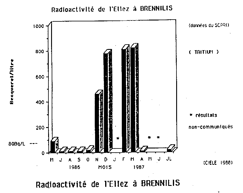 Radioactivité de l'Ellez à BRENNILIS 1987-1988 ![]() - 13 montrent un taux de radioactivité