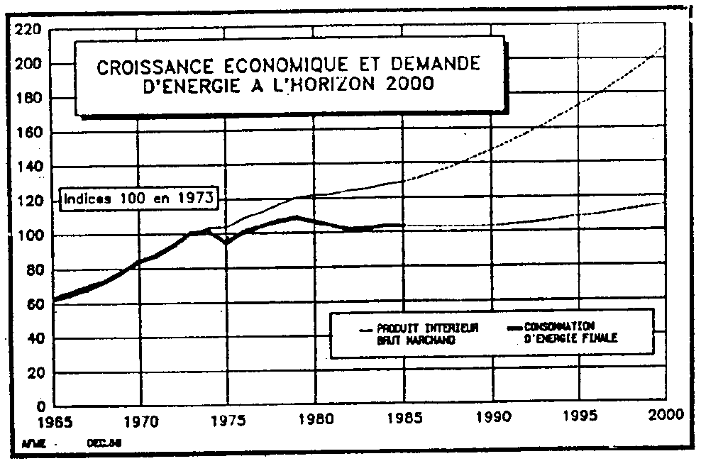 Il doit être composé d'hommes et de femmes issus de l'université ou de laboratoires de recherche et des entreprises, sous forme d'embauche ou de détachement, avec un statut garantissant la liberté de recherche et la liberté d'expression. Outre ces recherches, l'Office sera chargé d'organiser les confrontatiom nécessaires sur les choix techniques. b) Prévoir dans la Constitution le référendum d'initiative populaire. c) Rendre obligatoires le débat et la décision parlementaire pour les grands choix techniques après confrontation des thèses en présence et présentation des alternatives possibles. ECONOMIE ET MAITRISE DE L'ENERGIE QUELQUES TENDANCES RECENTES (Sources: A.F.M.E. et Ministère de l'Industrie) Jusqu'en 1973, l'augmentation de la consommation