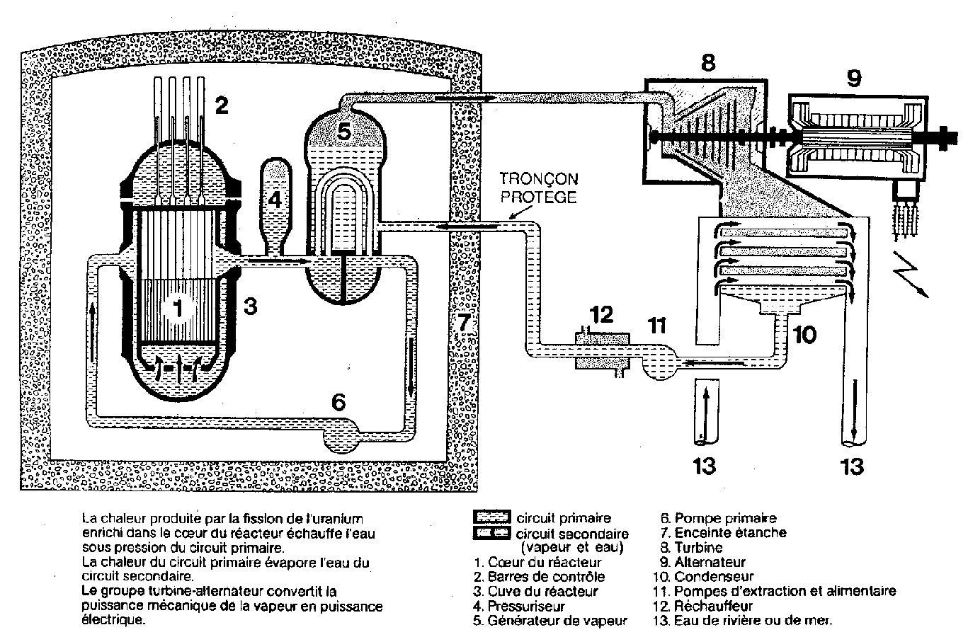 Les contrôles réalisés au cours des dernières années ont révélé des défauts dans certaines soudures des tuyauteries de vapeur principales des réacteurs à eau sous pression. Ces tuyauteries assurent la circulation de la vapeur entre les générateurs de vapeur situés à l'intérieur du bâtiment du réacteur et la turbine située dans la salle des machines. Elles sont au nombre de trois sur les réacteurs de 900 MWé et de quatre sur les réacteurs de 1.300 MWé. Elles comportent chacune immédiatement à l'extérieur du bâtiment du réacteur plusieurs soupapes de sûreté destinées à les protéger contre les surpressions ainsi qu'une vanne d'arrêt. La partie de ce circuit qui se trouve entre le mur de l'enceinte de confinement et la vanne d'arrêt doit faire l'objet d'une vigilance particulière et ce pour deux raisons: 1) D'une part une rupture de tuyauterie à cet endroit entraînerait un brutal appel de vapeur et donc une augmentation de la puissance demandée au coeur du réacteur. La vanne d'arrêt ne pourrait stopper ce débit de vapeur car il s'échapperait à son amont. L'arrêt d'urgence du réacteur ainsi que le déclenchement automatique de l'injection de sécurité permettraient de ramener le réacteur dans son état sûr. 2) D'autre part cette portion de circuit est une partie de la troisième barrière de confinement. Les réacteurs à eau sous pression disposent de trois barrières physiques entre les produits de fission issus de la réaction nucléaire et l'environnement: la gaine des crayons de combustible (1ère barrière) le circuit primaire (2ème barrière) et l'enceinte de confinement (3ème barrière). Les tuyauteries de vapeur traversant la paroi du bâtiment du réacteur jusqu'aux vannes d'arrêt situées à l'extérieur du bâtiment constituent donc une partie de la troisième barrière. Les défauts rencontrés affectent les soudures entre la tuyauterie principale et les tuyauteries des soupapes. Les paliers CP0 (réacteurs de 900 MWé de Fessenheim et Bugey), CPY autres réacteurs de 900 MWé) et 1.300 MWé présentent des anomalies différentes. 1 - Défauts rencontrés sur le palier