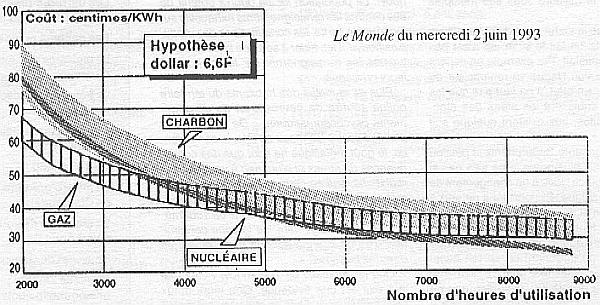 les trois ans depuis vingt ans, le coût de production d'un kWh nucléaire