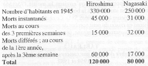 Le tableau 1 dresse le bilan général, tel qu'il a pu être établi àce jour, des décès survenus au cours de l'année qui a suivi les bombardements:
