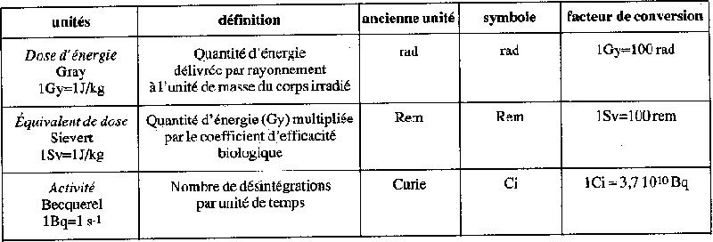 Ce n'est qu'avec une forte irradiation qu'il y a des effets immédiats pour la santé, allant de la brûlure à la mort par destruction des tissus fragiles: sang, cerveau. Les effets des fortes doses sont donc assez bien connus. Cependant fortes ou faibles, nos sens ne savent pas détecter les rayonnement ionisants. La réaction des organismes vivants est également très différente suivant les individus. Les enfants sont un groupe à haut risque ainsi que les femmes en état de procréer. Des études récentes ont confirmé que les foetus sont très sensibles dans les premières semaines et que des doses de l'ordre de 0,005 Sv peuvent entraîner des retards mentaux. Les effets des faibles doses sont encore à l'étude. Cependant les données accumulées vont toujours dans le sens d'un effet et ont conduit à la réduction de la dose admissible. Cette notion repose sur l'idée qu'il y a un seuil à partir duquel les rayonnements ne sont plus nocifs. En fait il est admis maintenant que toute dose a un effet sur la matière vivante. On peut regretter et surtout déplorer que des enquêtes sur les populations autour des sites ne soient pas menées, plus de 20 ans après le grand démarrage du nucléaire. (Le registre Hague a juste 3 ans!). Les pathologies des enfants de Tehernobyl ont confirmé l'extrême sensibilité de cette catégorie de la population à la contamination par l'iode et le césium, les deux principaux radioéléments échappés du réacteur accidenté. Dans le cas d'une irradiation globale de l'ordre de 0,15 Gy (3 fois supérieure à la dose maximale 0,05 Gy) on observe des effets irréversibles sur le sperme. Il semblerait que les faibles doses (moins de 0,05 Gy) puissent être aussi à l'origine de stérilité ou de fragilité chez les foetus. (suite)