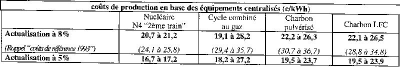 Une telle étude a en outre des conséquences immédiates sur un certains nombres d'actions publiques. Il s'agit par exemple du récent lancement des programmes d'action en faveur de la cogénération ou de l'éolien. Il s'agit aussi de la réforme des tarifs de l'électricité, dans la mesure où les tarifs sont fondés sur les "coûts marginaux de développement" (c'est-à-dire sur les coûts d'investissement et d'exploitation liés à une consommation supplémentaire d'électricité); la baisse des tarifs d'hiver, qui est entreprise dès avril 1997, constitue par exemple une conséquence des possibilités nouvelles qu'offrent les "cycles combinés au gaz" fonctionnant en semi-base . La mise à jour de l'étude sur les "coûts de référence" va être terminée en mai 1997, avec le concours d'un groupe de travail associant les principaux opérateurs du secteur énergétique. Le Ministre de l'industrie, de la poste et des télécommunications a souhaité que la réunion des Présidents de CLI du 17 avril soit l'occasion de fournir des premiers éléments d'information sur cette étude. II - Les résultats