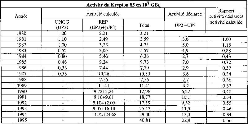 de krypton 85 et l'activité déclarée