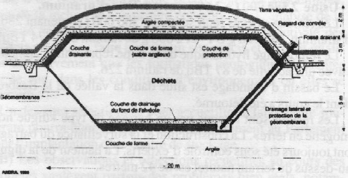 Le contrôle de l'absence de fuite est réalisée par un tapis drainant situé à la base des déchets et par un puisard de contrôle. Cette première barrière procure une étanchéité parfaite pendant plusieurs dizaines d'années. Le stockage est implanté dans une épaisse couche d'argile qui assure l'étanchéité sous le stockage (au moins 5m) et qui permet également de réaliser la couverture. Ce matériau naturel constitue la deuxième barrière dont la durabilité est assurée sur le très long terme. Enfin, la couche perméable située sous l'argile devrait permettre d'assurer un rôle de rétention en cas de défaillance des barrières précédentes. De telles dispositions constructives permettent de garantir que l'impact de l'installation sur l'environnement sera nul même en cas de défaillance.