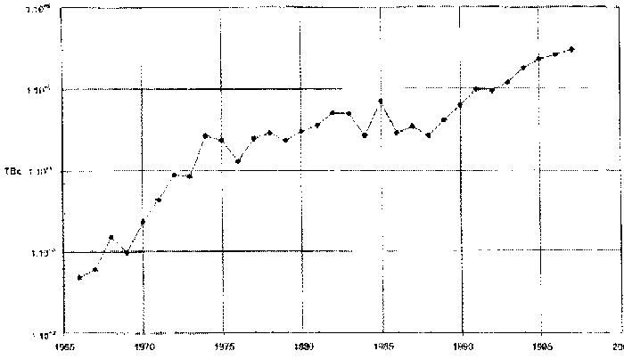 1959 à 0,8 Bq./m3 au début des années 80;