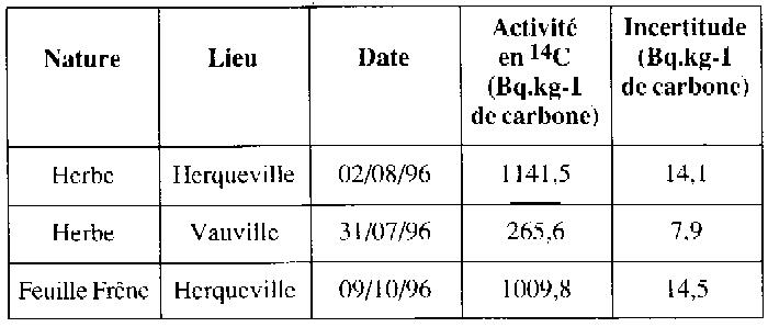 Il existe peu de mesures du 14C dans l'environnement de La Hague. Ce point a été souligné dans la note méthodologique sur l'impact des rejets de l'usine de retraitement de La Hague clu Groupe Radioécologie Nord Cotentin (juillet 1998). 3.1 Milieu terrestre