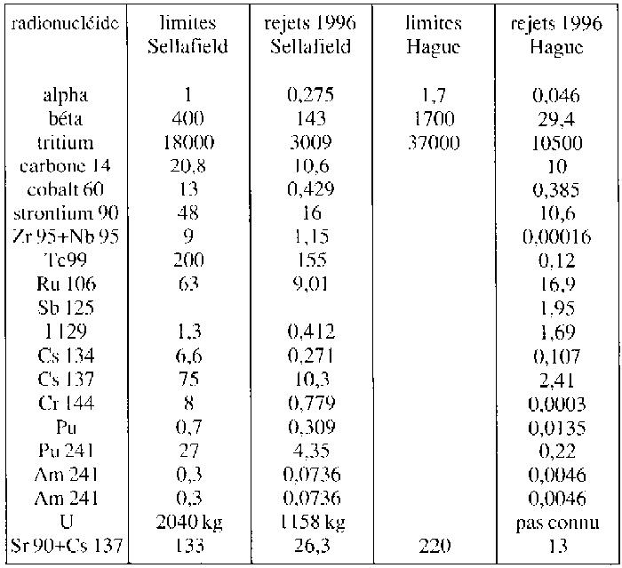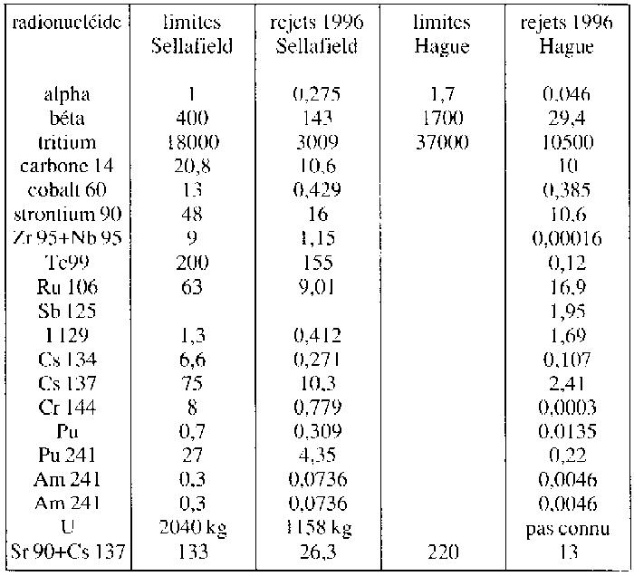 ces rejets, avec comparaison avec Sellafield, I' ensemble est présentéet