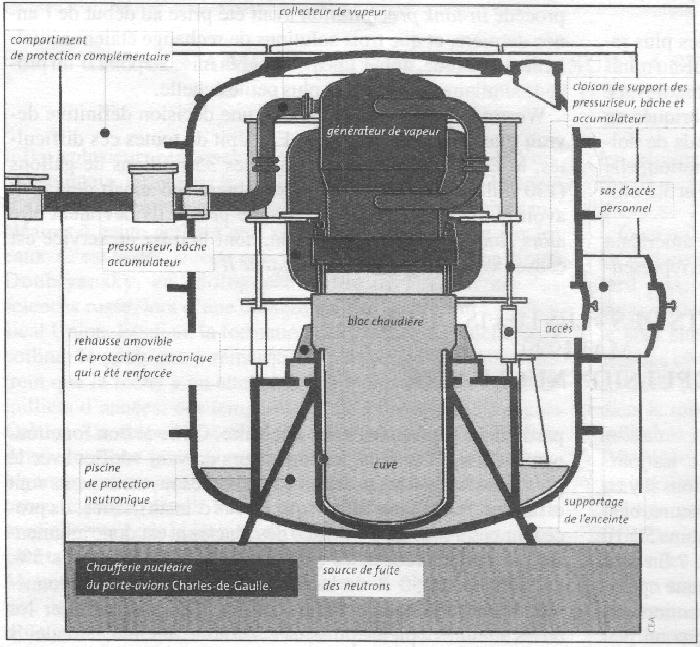 Ce travail est effectué par Technicatome en collaboration avec le Serma et le SPRC à l'aide de logiciels qui modélisent le trajet des neutrons et des gamma dans l'environnement des réacteurs. Les nouveaux dispositifs sont aujourd'hui définis et dessinés. Ils sont fabridés ce printemps et seront mis en place lorsque le porte avions s'arrêtera durant trois ou quatre mois l'été prochain pour les travaux d'entretien. Radioprotection: deux poids, deux mesures
