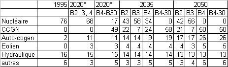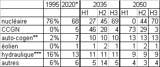 5.3.4 On peut considérer comme raisonnable d'écarter les scénarios à très forte proportion de nucléaire (environ 70%) H3 et B3 pour des raisons de besoin de diversification des sources et des filières énergétiques (sécurité énergétique) et d'optimisation de l'utilisation des parcs nucléaires (fonctionnement en base).