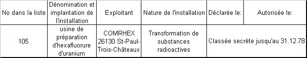 Prenons les classifications officielles des INB parues au JO: Prenons la dépêche suivante