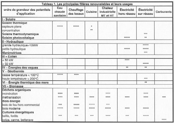ses filières), la plupart des sources renouvelables se voient cantonnées