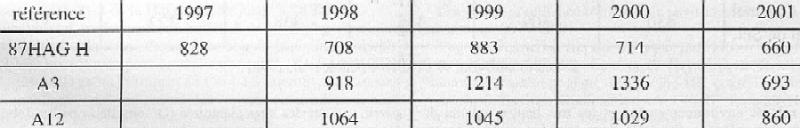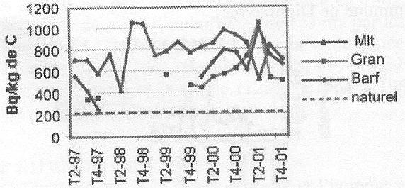 1998 (2540 Bq/kg de C) suivent la même loi.