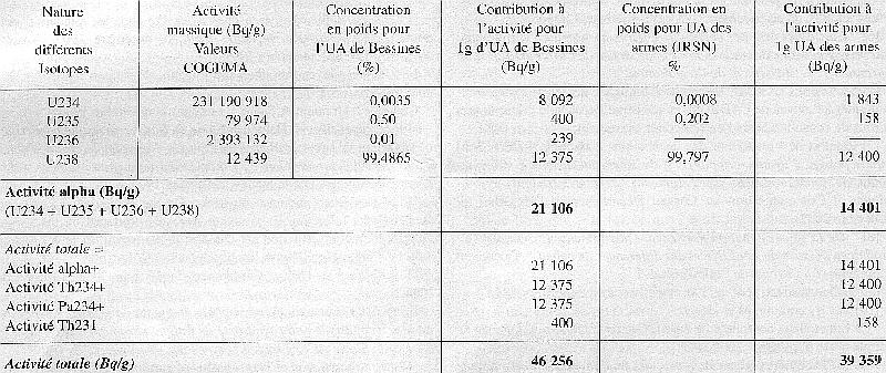 par l'IRSN l'activité alpha est 14,4.103 Bq/g et l'activité
