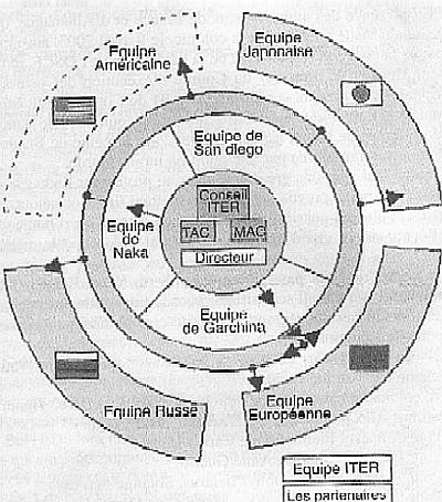 1 – Cette audition dans le cadre de la saisine de la Commission Nationale du Débat Public semble surréaliste. En effet elle se situe après les décisions prises par le gouvernement français qui, à la date du 29 janvier 2004, a déjà franchi, pour le choix du site, le stade européen de la compétition (Espagne-France) et est arrivé à l'étape finale face à la candidature du Japon. Dans mon innocence je croyais que cette saisine aurait dû se situer avant le dépôt de candidature du site français. 2 – Je ne ferais pas l'injure de sous estimer la qualification scientifique et technique des chercheurs et ingénieurs qui travaillent sur ce projet, mais alors pourquoi le dossier soumis à votre instance est-il aussi inconsistant, contient-il autant de formulations qui relèvent d'une mauvaise propagande. Même les auteurs de documents "grand public" d'EDF n'osent plus le faire. Serait-ce une expression de ce qu'ils pensent de votre instance ? Le caractère international du projet ITER n'est pas une chose unique. Le CERN, qui à l'origine avait un caractère européen (au sens géographique et non politique), est devenu dans le cadre de son projet Large Hadron Collider (LHC) "mondial". L'expérience que nous avons acquise au vu d'environ cinquante ans du fonctionnement du CERN est qu'il ne donne pas un leadership scientifique et technique aux équipes du pays d'accueil. Par ailleurs il ne faut se faire trop d'illusions quant à la position des équipes françaises dans le projet. La structure est assez claire. Il y a en tête le ITER Legal Entity (ILE), secondé par des "agences domestiques" par secteur, pour nous c'est "ELE" (European Legal Entity), basée au Max Plank Institut de Garching (Allemagne), le CEA ne sera que "prestataire de service" au niveau d'une structure locale française (FLE – French Legal Entity) qui gérera également les équipes du CNRS impliquées dans le projet. extrait du site http://www-fusion-magnetique.cea.fr/iter/iter01.htm#ch13 Organisation pendant la phase EDA (suite)