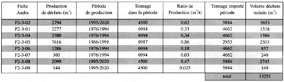 Solution 1, "respect de la loi" Là le résultat est complétement aberrant: 22.878 m3 de déchets B étrangers calculés produits en 2011... pour 1.780 m3 prévus en retour de 2008 à 2016. Solution 2, "non respect de la loi"