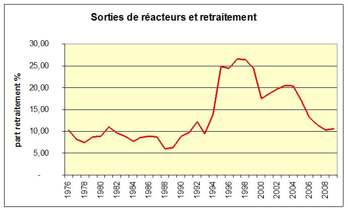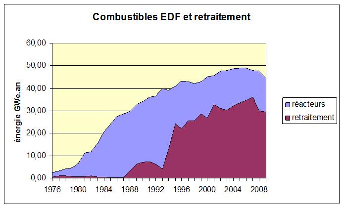L’état du retraitement en France de 1976 à 2009 À partir des mêmes références UNSCEAR, AREVA NC et RIFE et de la connaissance en GRNC de l’historique du retraitement des combustibles EDF et des combustibles étrangers depuis 1976, nous pouvons évaluer le bilan des combustibles français: