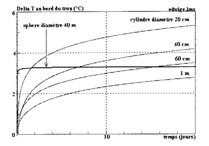 diamètres de trou et une température initiale du sol de 15°C.