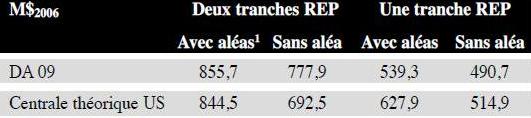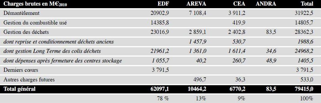 Les coûts de référence correspondant s’élèveraient donc à respectivement 439,7 €/kW, 537,8 €/kW et 550 €/kW. Rapportées au parc EDF, les charges brutes de démantèlement seraient les suivantes: Application des résultats des études américaines