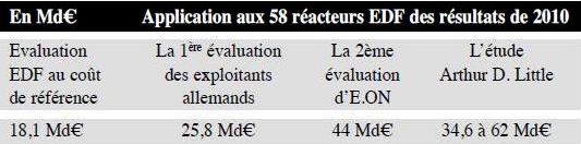 Le coût de référence se situerait alors dans une fourchette de 556 €/kW à 996 €/kW. Rapporté au parc EDF, les charges brutes de démantèlement seraient les suivantes: Application des résultats des études allemandes au