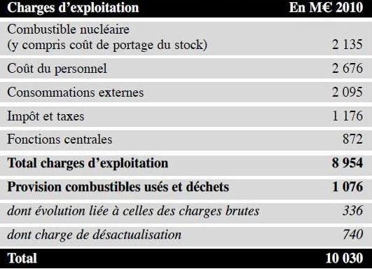 du coût de production de l’électricité nucléaire en 2010 Source: Cour des comptes * les écarts mineurs avec les calculs des charges d’exploitation du chapitre II et du B du présent chapitre sont expliqués dans l’annexe 15. (suite)