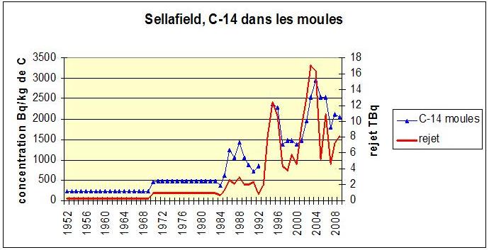 carbone 14 effectuées à Sellafield, par des mesures effectuées sur les