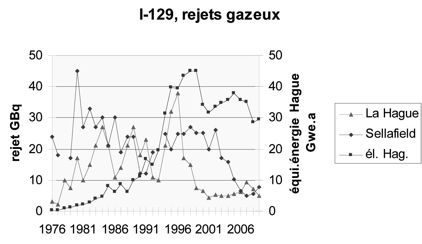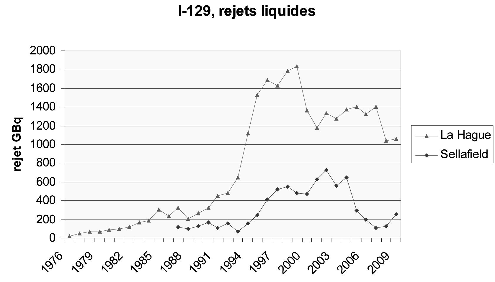 Sellafield et de La Hague sur 45 ans, les 35.000 GBq d’iode 129 rejetés