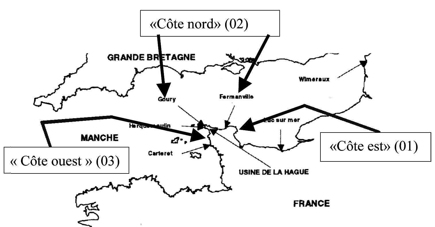 contamination en mer de La Manche, à plus de 40 - 300 km du point de