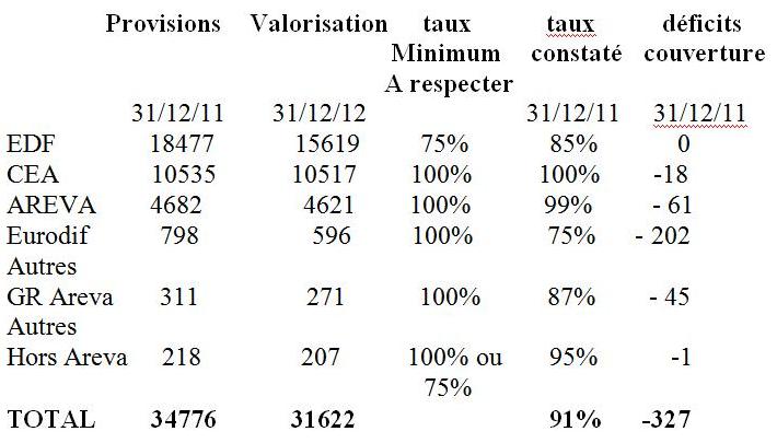 Provisions actualisées (en millions d’euros au 31/12/2011)