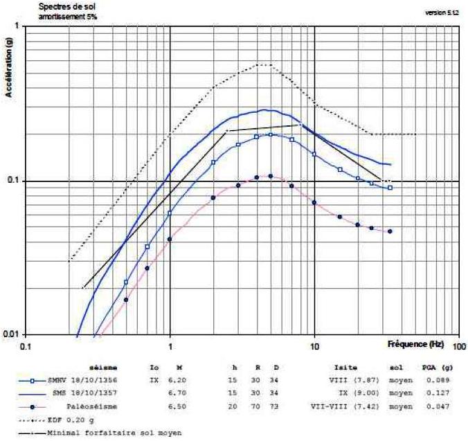 spectres de sol [FSH2-9] Le séisme d'inspection représente le niveau de séisme en deçà duquel aucune vérification ou inspection des composants, dont la tenue au séisme est requise au titre de leur rôle pour la sûreté, n’est nécessaire pour le maintien ou la reprise de l’exploitation du réacteur. Ce séisme d’inspection correspond à une accélération horizontale maximale en champ libre de 0,05 g. Après l’occurrence d’un séisme correspondant à une accélération horizontale maximale en champ libre supérieure au séisme d'inspection, la reprise de l’exploitation ne pourra être effectuée qu’après justification auprès de l’Autorité de sûreté nucléaire de l’innocuité du séisme sur l’état de l’installation et son comportement ultérieur. [FSH2-10] Vis-à-vis des situations de grands froids, les cas de charge de températures basses de l’air à retenir sont : - inférieures ou égales à -15°C comme température minimale de longue durée; - inférieures ou égales à -26°C comme température minimum de courte durée; - inférieures ou égales à -32°C comme température minimum instantanée pour les matériels de faible inertie thermique. [FSH2-11] La mise en place de matériels antidéflagrants dans le bâtiment des auxiliaires nucléaires conformément aux objectifs présentés dans le rapport de conclusions du réexamen de sûreté est achevée le 31 décembre 2013. [FSH2-12] Un dispositif est installé avant le 31 décembre 2014 afin d'éviter une dispersion directe du ciel de cuve du réservoir PTR (de traitement et de refroidissement d'eau des piscines) dans l'environnement en cas d'accident. [FSH2-13] Avant le 31 décembre 2013, un dispositif est mis en place afin d'éviter une perte de confinement en cas de rupture de la barrière thermique d'un groupe motopompe primaire. [FSH2-14] Avant le 31 décembre 2013, tous les défauts de génie civil à traiter à titre préventif identifiés dans le bilan de l'examen de conformité transmis à l’ASN à l'issue de la troisième visite décennale sont traités. (suite)