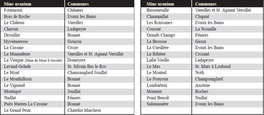 d’uranium a eu lieu en France entre 1946 et 2001 sur 210 sites miniers.