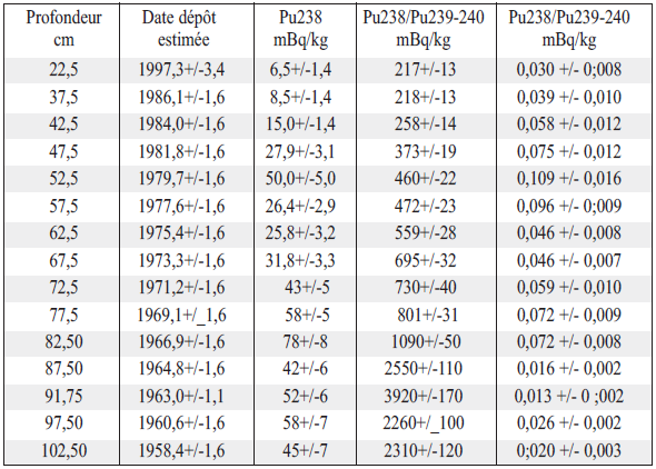 concentration en 238Pu (1967, mais plus probablement 1969) et les