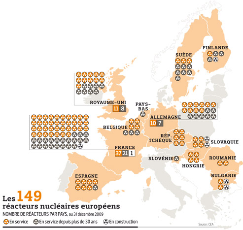 | 2009 | Carte des 149 réacteurs européens (CEA) | La production et la distribution d’électricité en 2009 | |