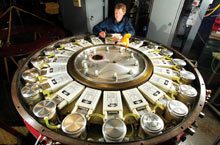 But with the new device, the researchers expect to be able to deliver more electricity than the Z machine can, increasing the temperature in a fuel pellet and causing more fusion to occur--potentially producing an explosion with significantly more energy than it takes to start the reaction. The device could also make it possible to ignite a fuel pellet every 10 seconds, providing a continuous supply of heat to make steam and drive a generator. To create this amount of fusion, the researchers will need to build many of these devices, linking them together to form modules, several of which would themselves be arranged around a central point, where the fuel pellet could be dropped and ignited. Such a system would deliver in an extremely short burst far more power than is created by all the power plants in the United States. Still, don't expect the Sandia technology to head to commercialization anytime soon. Even if money were no object, it could take 30 years to build a system, says Keith Matzen, director of pulsed power projects at Sandia. Others think the engineering challenges involved in harnessing rapid series of large explosions are likely to prove just too difficult. With the new device, says Ian Hutchinson, professor of nuclear science and engineering at MIT, the Sandia and Tomsk researchers have scaled a 500-foot hill. The work they've yet to do is the equivalent of a 25,000-foot mountain. Several other researchers concur, noting that the Sandia researchers must also demonstrate that the system can produce the levels of fusion that their models predict. |