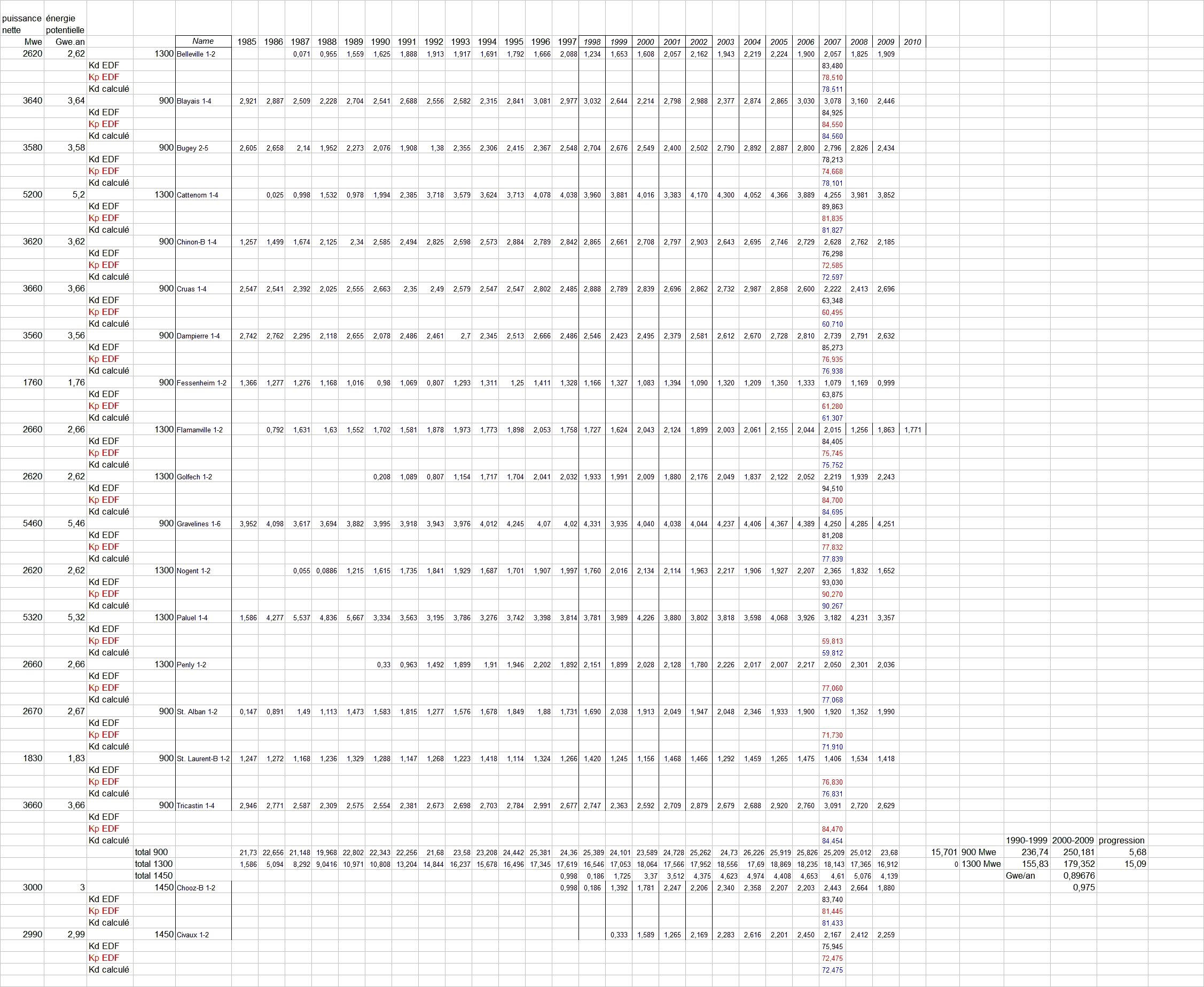 à la moyenne des Kp du site, recensés dans le fascicule Elecnuc